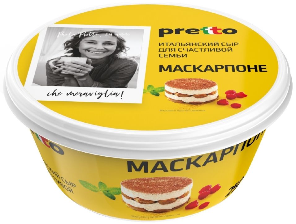 Сыр мягкий Маскарпоне приготовлен по классическому рецепту из сливок: никаких загустителей и добавок! Это сливочный сыр, нежный и густой. Имеет кремообразную консистенцию молочного цвета. Сыр, идеально подходит для десертов - например тирамису. На основе сыра Маскарпоне готовят не только десерты, но и соусы для мяса, рыбы или пасты.